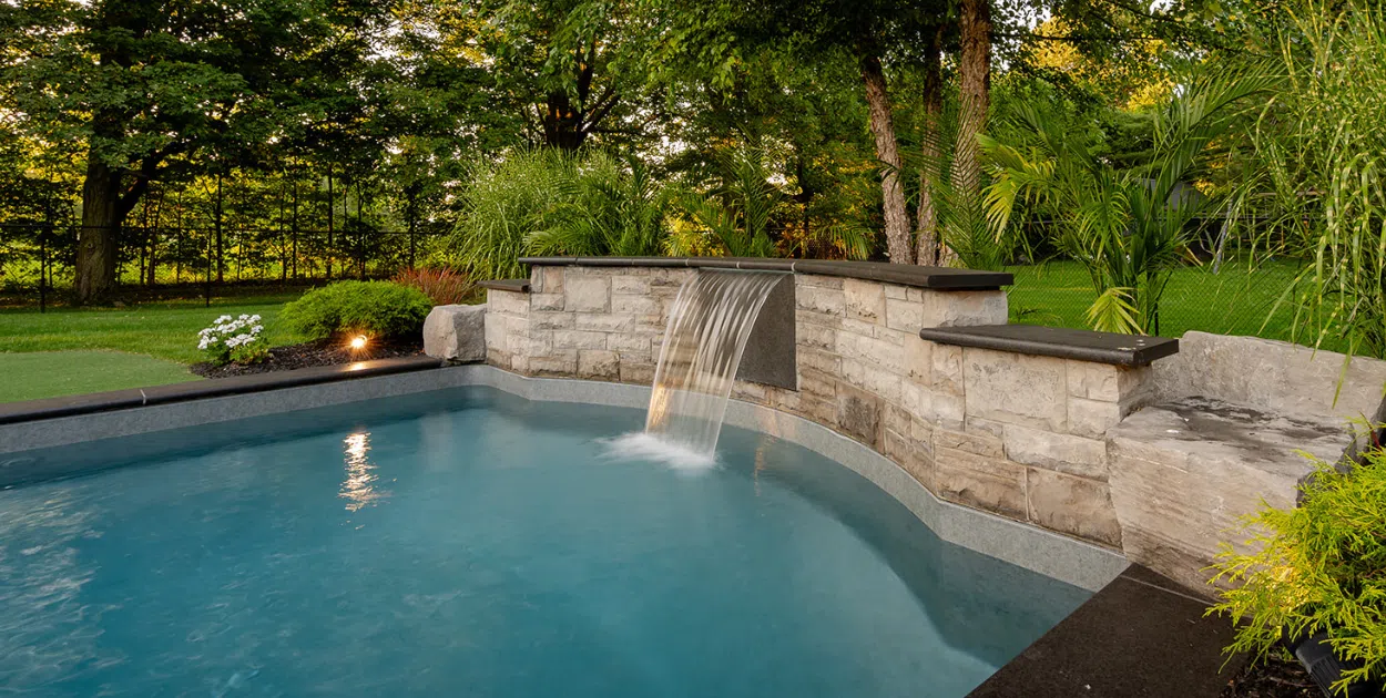 Landscaping also plays a significant role in how the finished space feels. Privacy hedges create a sense of enclosure and seclusion. Ornamental grasses and shade trees add softness and natural texture. Water features like fountains or spillways bring sound and movement. Thoughtful outdoor lighting extends how you use the space into the evening, highlighting the pool and creating atmosphere.